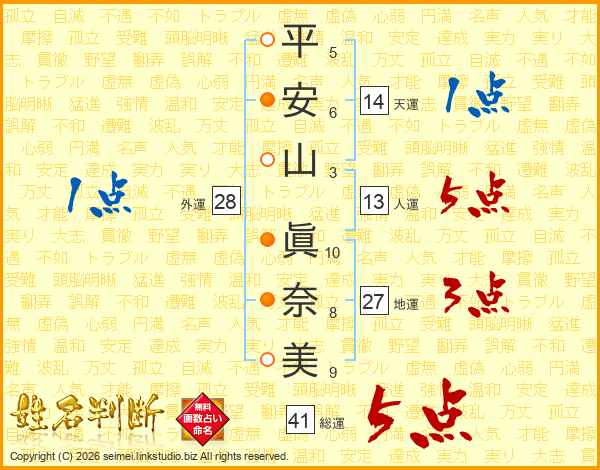 平安山眞奈美さんの総運は41画の5点!