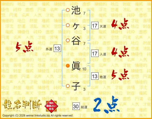 池ヶ谷眞子さんの天運は17画の4点!