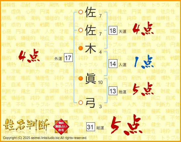 佐佐木眞弓さんの外運は17画の4点!