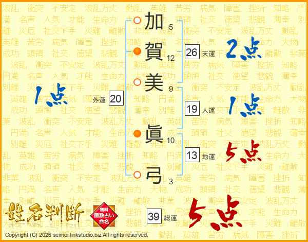 加賀美眞弓さんの総運は39画の5点!