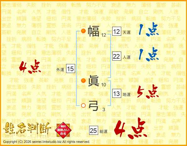 幅眞弓さんの総運は25画の4点!