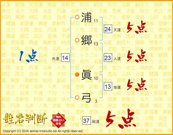 浦(11画)郷(13画) 眞(10画)弓(3画)
