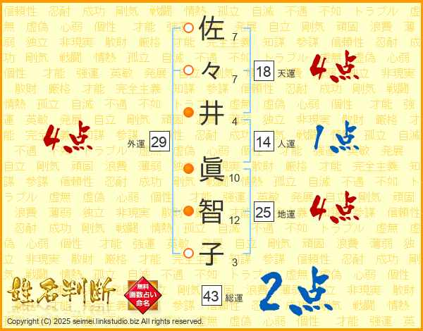 佐(7画)々(7画)井(4画) 眞(10画)智(12画)子(3画)