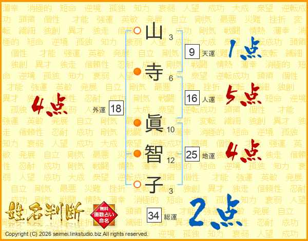 山寺眞智子さんの外運は18画の4点!