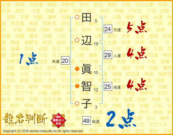 田辺眞智子さんの総運は49画の2点!