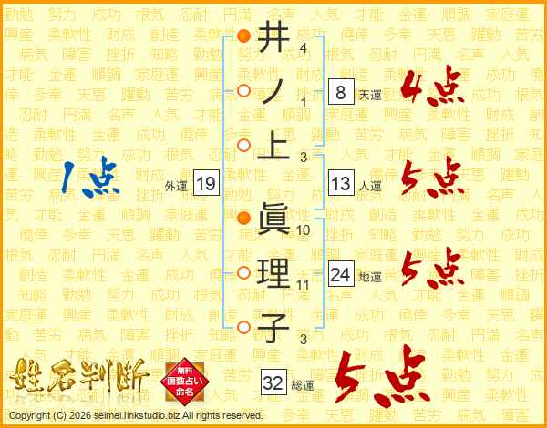井ノ上眞理子さんの総運は32画の5点!