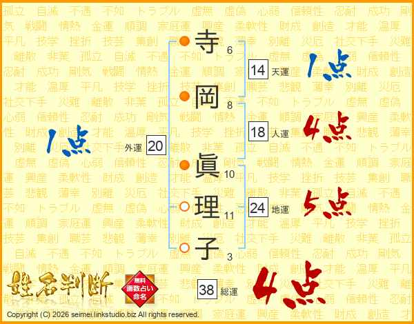 寺岡眞理子さんの総運は38画の4点!