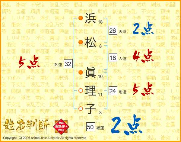 浜(18画)松(8画) 眞(10画)理(11画)子(3画)