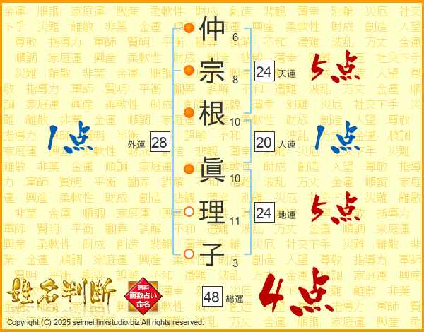仲宗根眞理子さんの総運は48画の4点!
