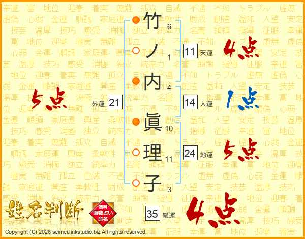 竹ノ内眞理子さんの総運は35画の4点!