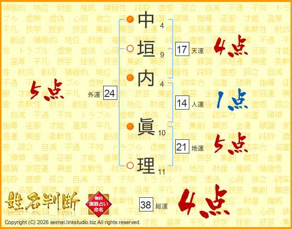 中垣内眞理さんの総運は38画の4点!
