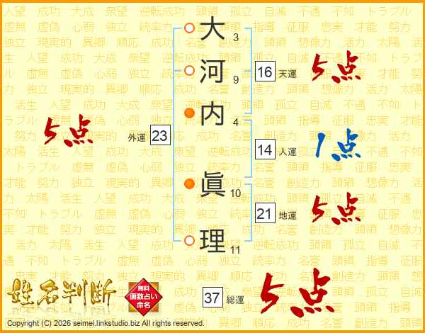 大河内眞理さんの総運は37画の5点!