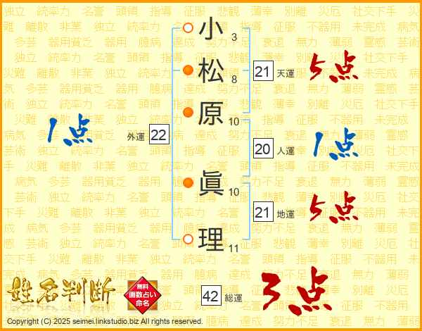 小(3画)松(8画)原(10画) 眞(10画)理(11画)