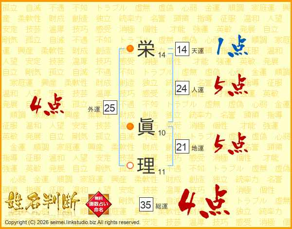 栄(14画) 眞(10画)理(11画)