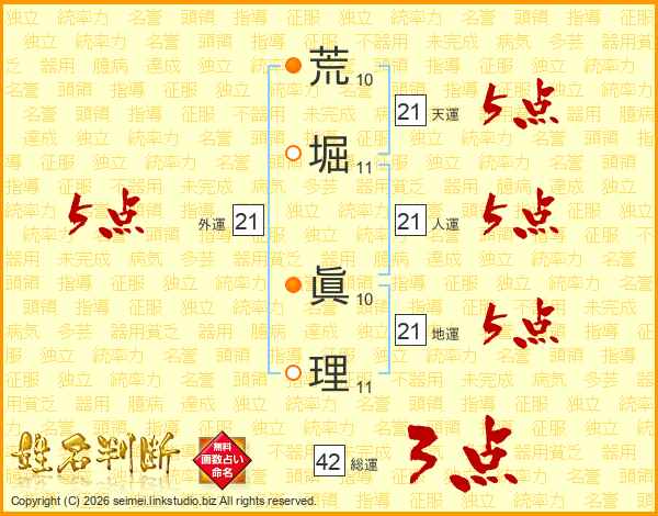 荒(10画)堀(11画) 眞(10画)理(11画)