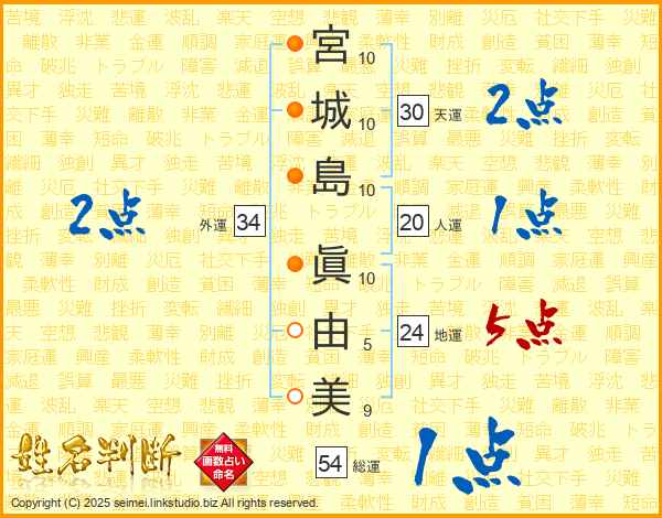 宮城島眞由美さんの総運は54画の1点!