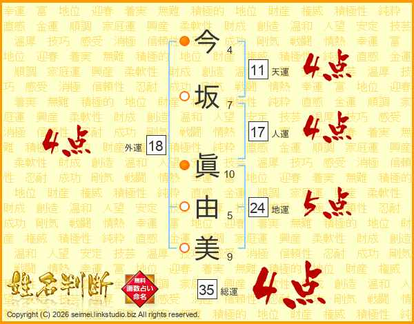 今坂眞由美さんの総運は35画の4点!