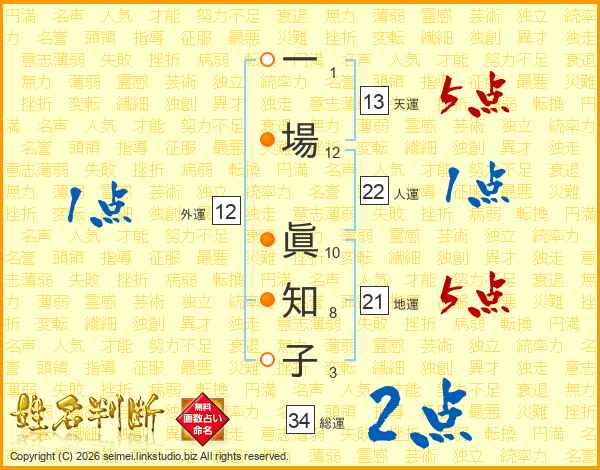 一場眞知子さんの天運は13画の5点!