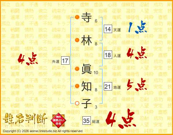 寺林眞知子さんの総運は35画の4点!