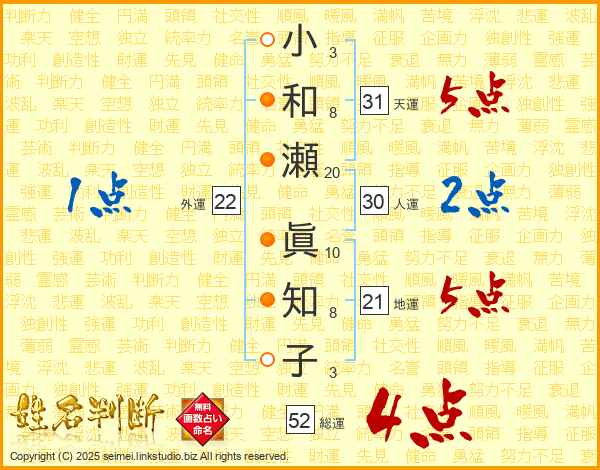 小和瀬眞知子さんの総運は52画の4点!