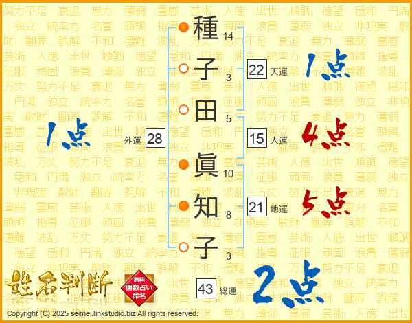 種子田眞知子さんの総運は43画の2点!