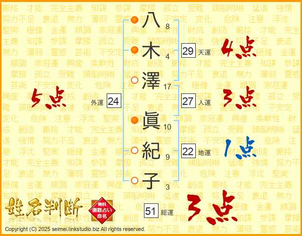 八木澤眞紀子さんの外運は24画の5点!