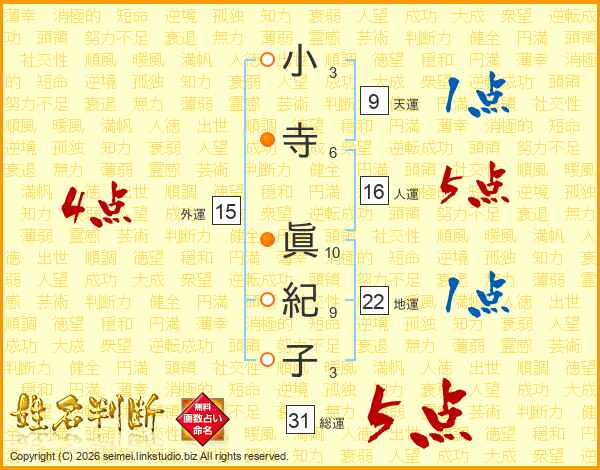小寺眞紀子さんの総運は31画の5点!