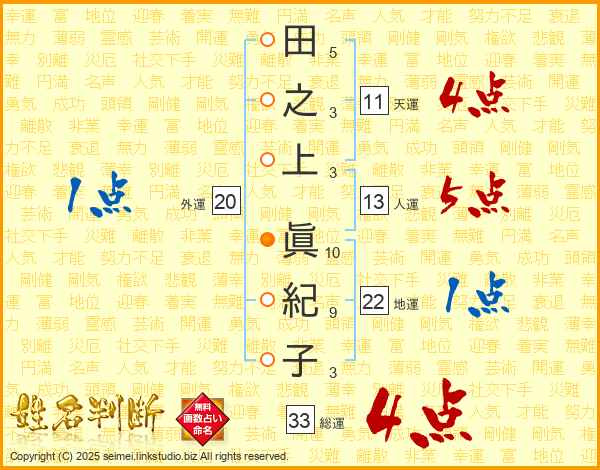 田之上眞紀子さんの総運は33画の4点!