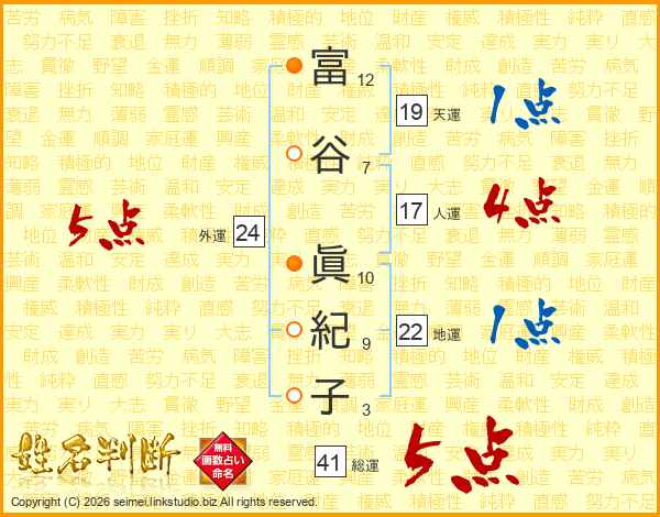 富谷眞紀子さんの総運は41画の5点!
