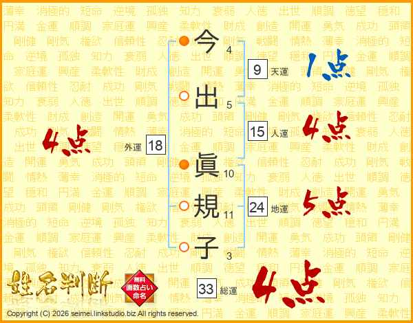 今出眞規子さんの総運は33画の4点!