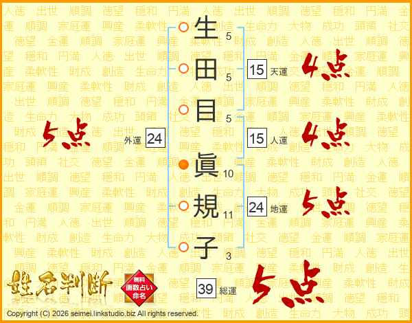 生田目眞規子さんの総運は39画の5点!