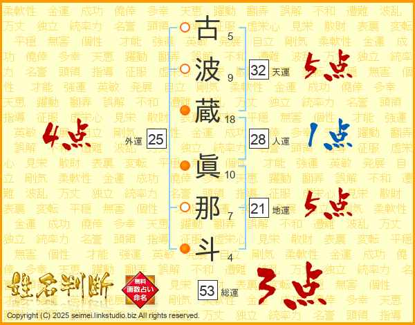 古波蔵眞那斗さんの天運は32画の5点!