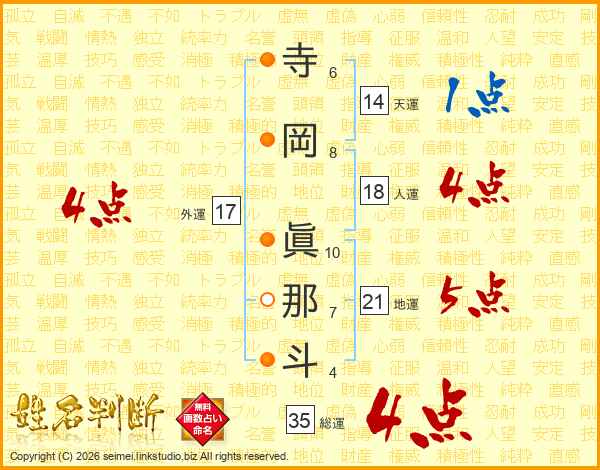 寺岡眞那斗さんの総運は35画の4点!