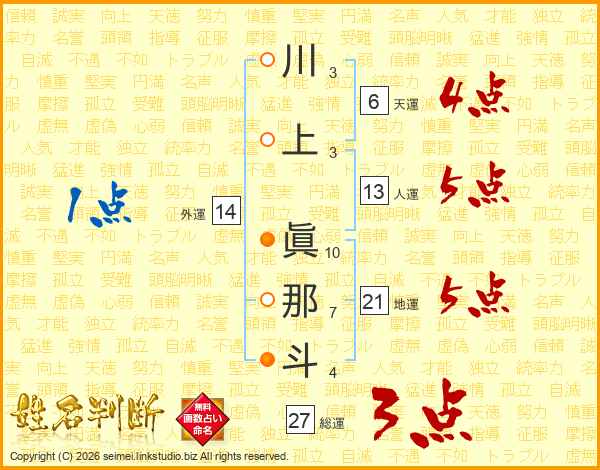 川上眞那斗さんの人運は13画の5点!