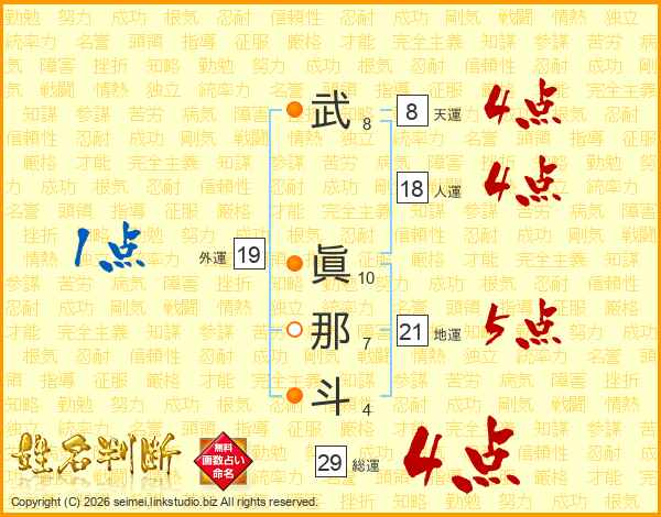 武眞那斗さんの総運は29画の4点!