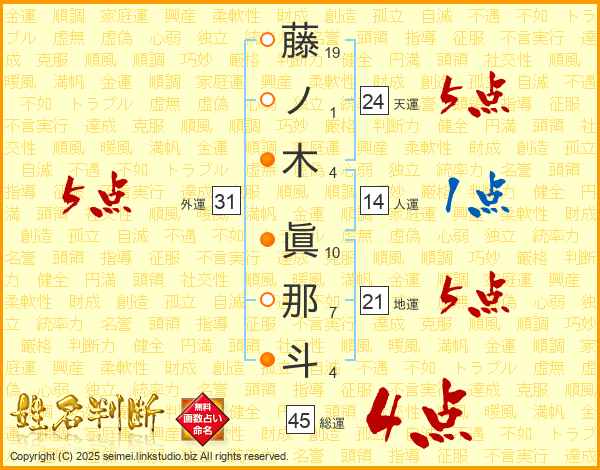 藤ノ木眞那斗さんの外運は31画の5点!