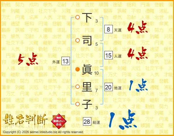 下司眞里子さんの総運は28画の1点!