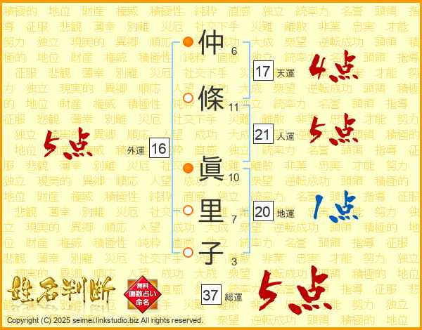 仲條眞里子さんの人運は21画の5点!