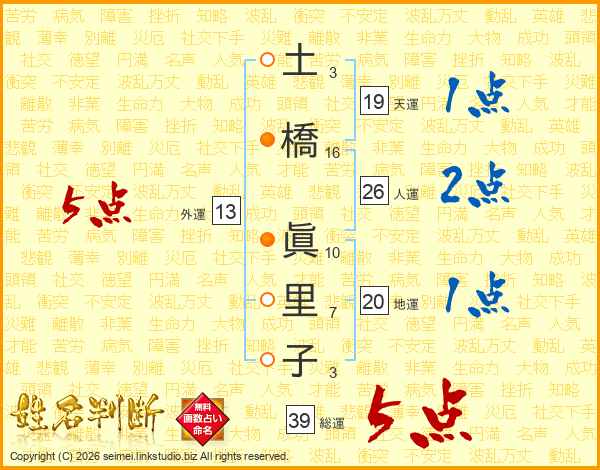 土橋眞里子さんの総運は39画の5点!