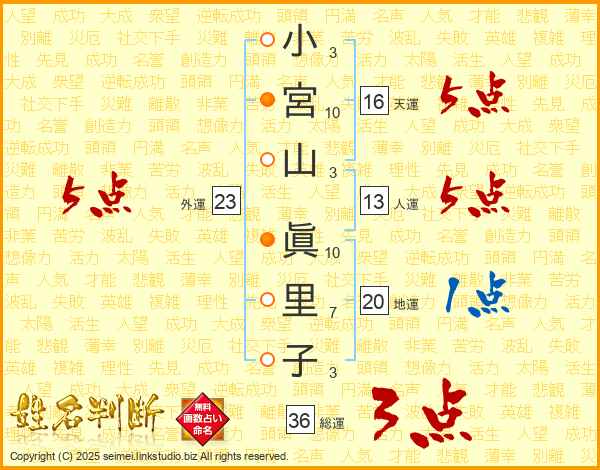 小宮山眞里子さんの人運は13画の5点!