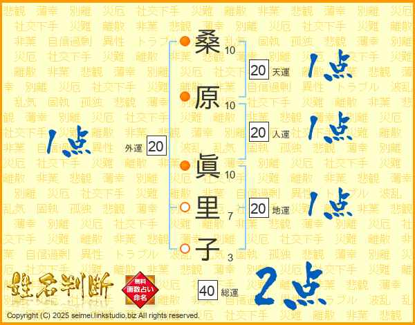 桑(10画)原(10画) 眞(10画)里(7画)子(3画)