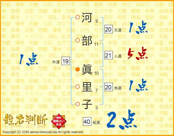 河部眞里子さんの人運は21画の5点!