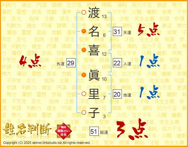 渡名喜眞里子さんの総運は51画の3点!