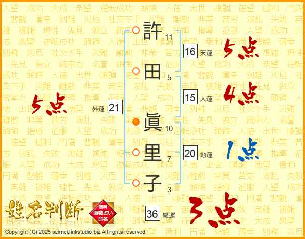 許田眞里子さんの外運は21画の5点!
