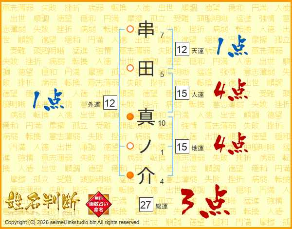 串田真ノ介さんの総運は27画の3点!