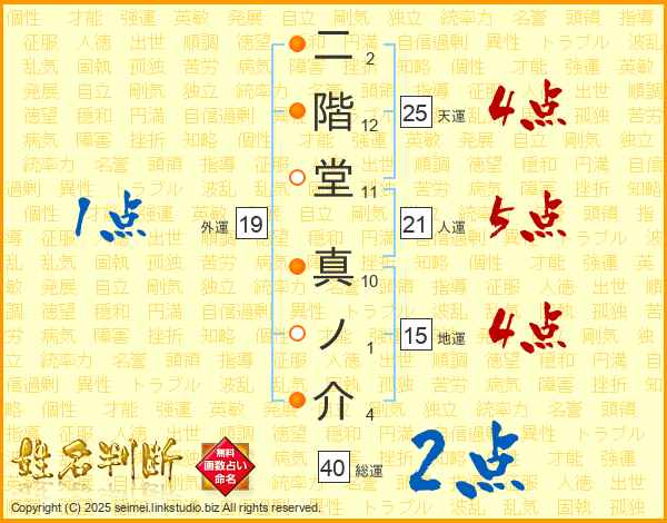 二階堂真ノ介さんの天運は25画の4点!
