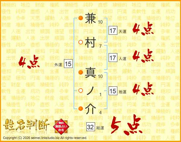 兼村真ノ介さんの総運は32画の5点!