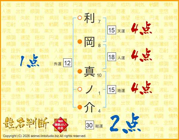 利岡真ノ介さんの総運は30画の2点!