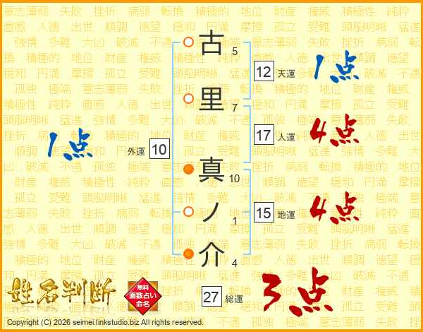 古里真ノ介さんの総運は27画の3点!