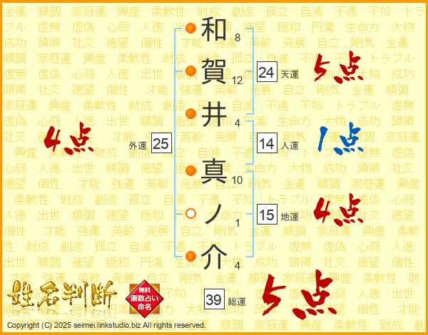 和(8画)賀(12画)井(4画) 真(10画)ノ(1画)介(4画)